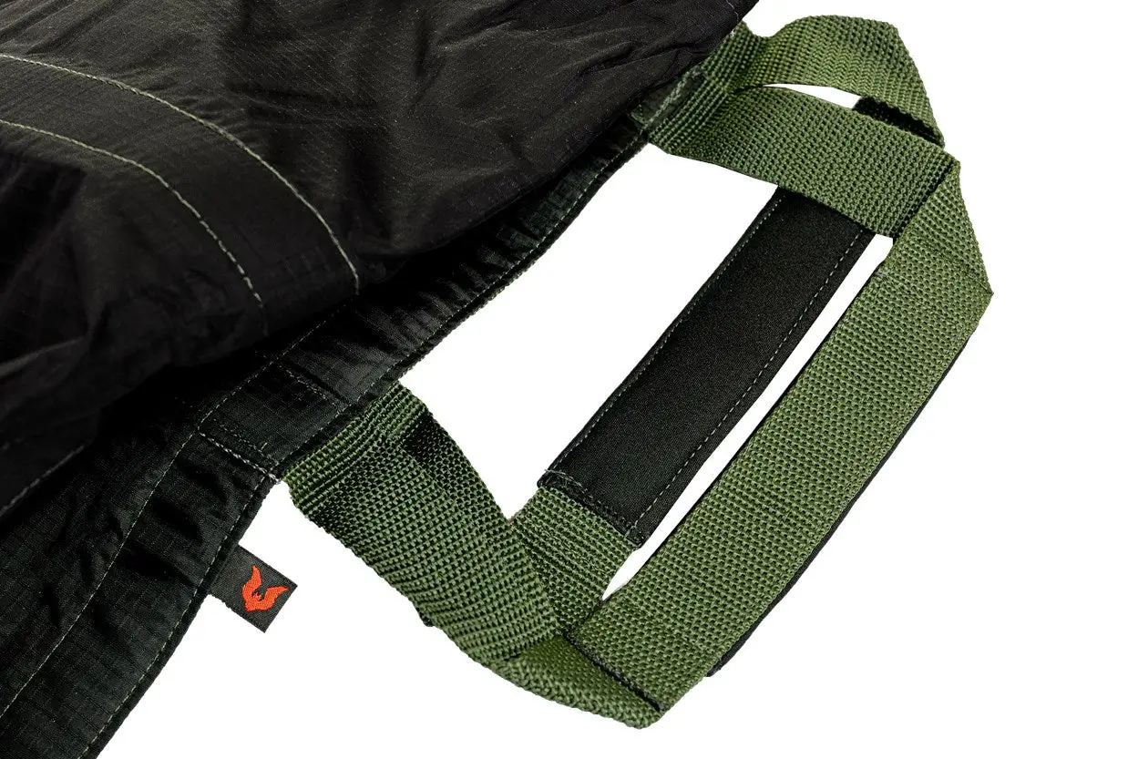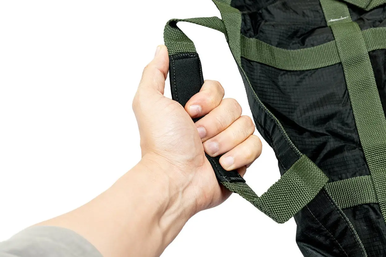 Fabricada con tejido ripstop de nailon de alta resistencia, 100% nailon / Asas de transporte de polipropileno de alta resistencia de 30 mm y cinta de neopreno de 2 mm / Zona de arrastre en ripstop Cordura 100% nailon / Cosida con hilo 100% poliamida / Cierre de bloqueo de polímero / Bolsillo fabricado en Cordura, cierre de velcro 100% nailon, cinta de poliéster.